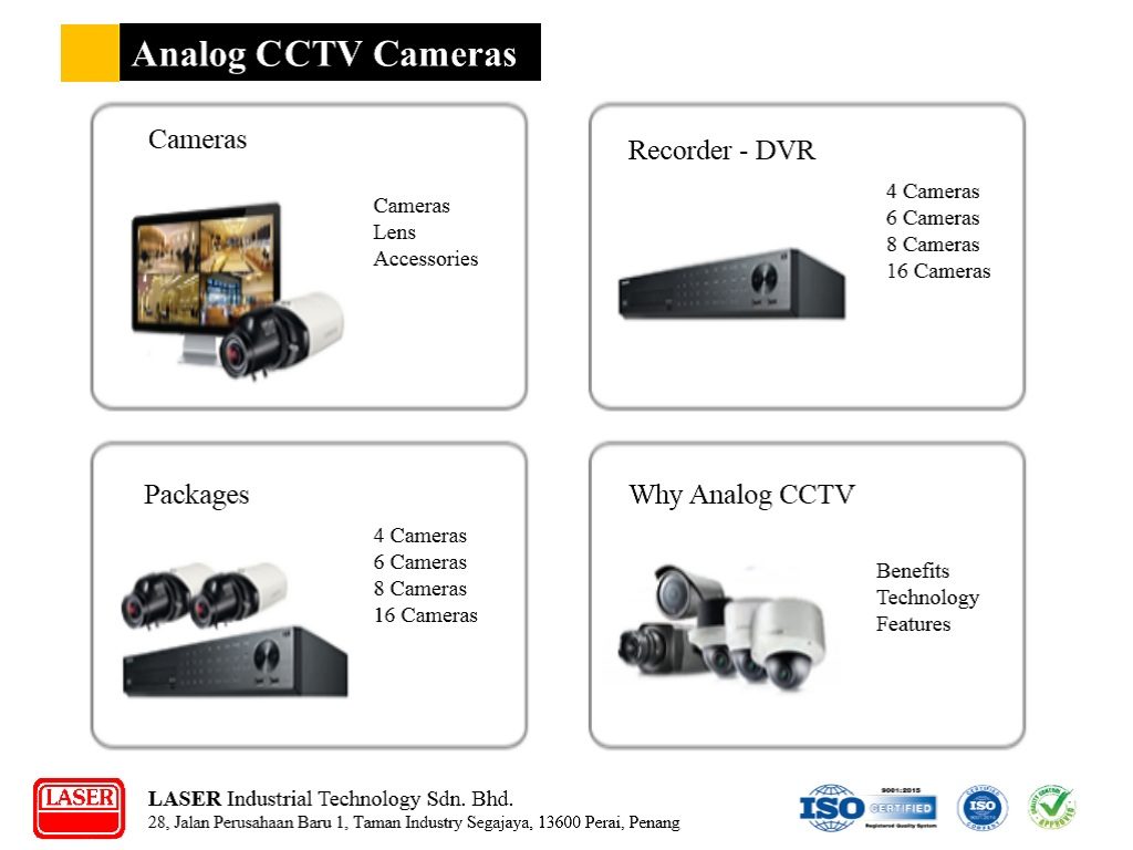 Type 1 – Analog CCTV Cameras Type 2 – IP HD CCTV Cameras Commercial & Residential CCTV Passenger Counting On Board Unit (OBU) DVR/ NVR LED Destination Display Media Player Media Interface Destination Announcement